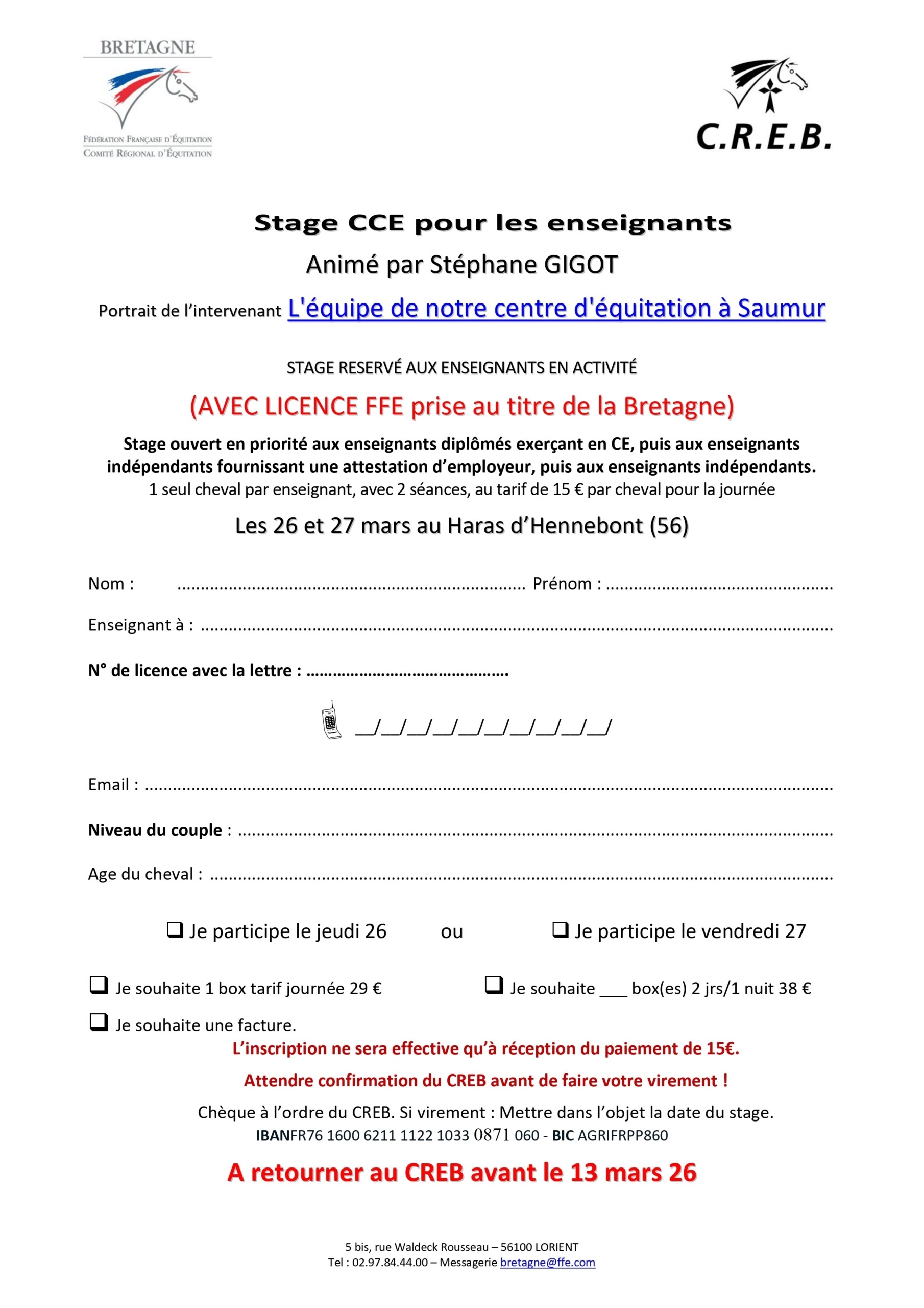 (AVEC LICENCE FFE prise au titre de la Bretagne)