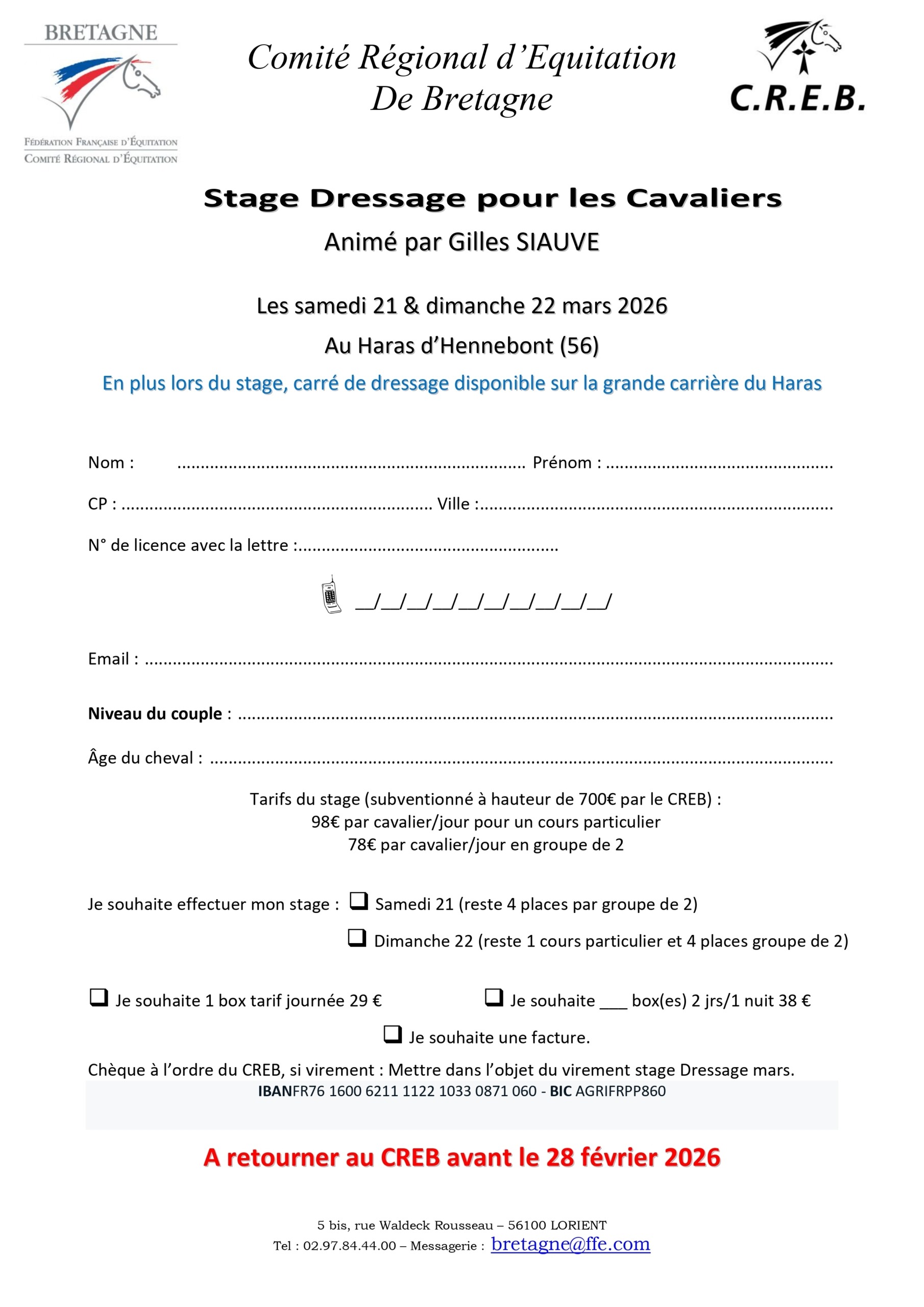 Stage Dressage pour les Cavaliers animé par Gilles SIAUVE
